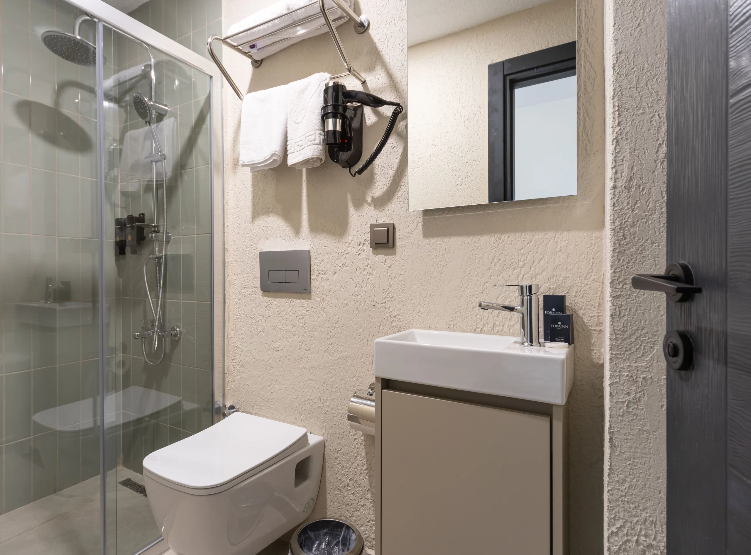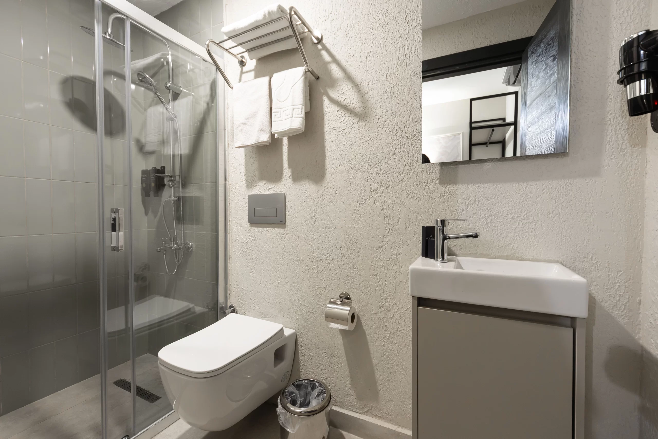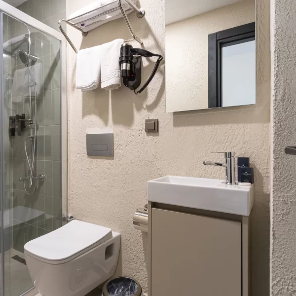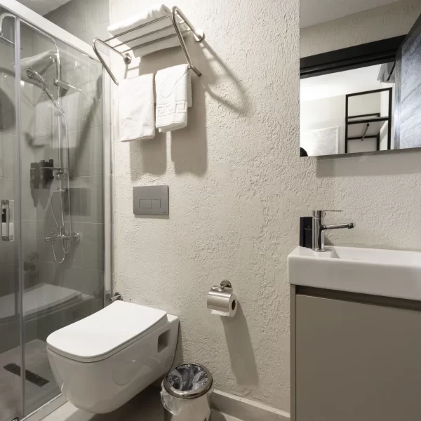 Duşlu banyoda hijyenik havlu ve banyo malzemeleri ile günlük temizlik hizmeti, odanızın her daim ferah ve temiz kalmasını sağlar.