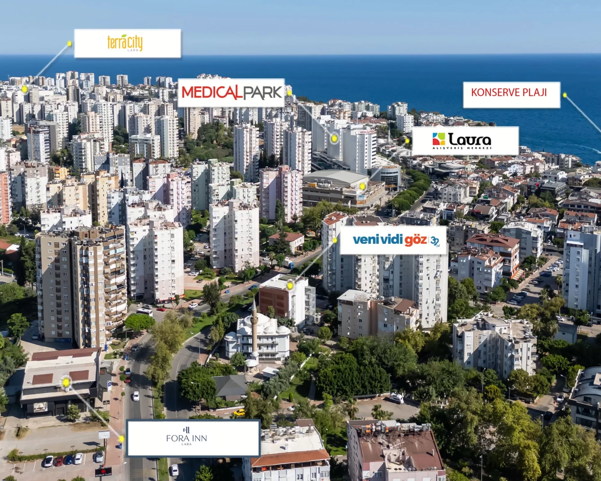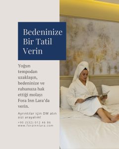 Located in the Muratpaşa – Lara area, one of Antalya’s most exclusive districts, Fora Inn Lara promises a peaceful and unforgettable holiday just a few steps from the sea. Surrounded by nature, close to the city center, and embraced by the unique atmosphere of Lara Beach, our hotel places you right at the heart of relaxation, exploration, and comfort.