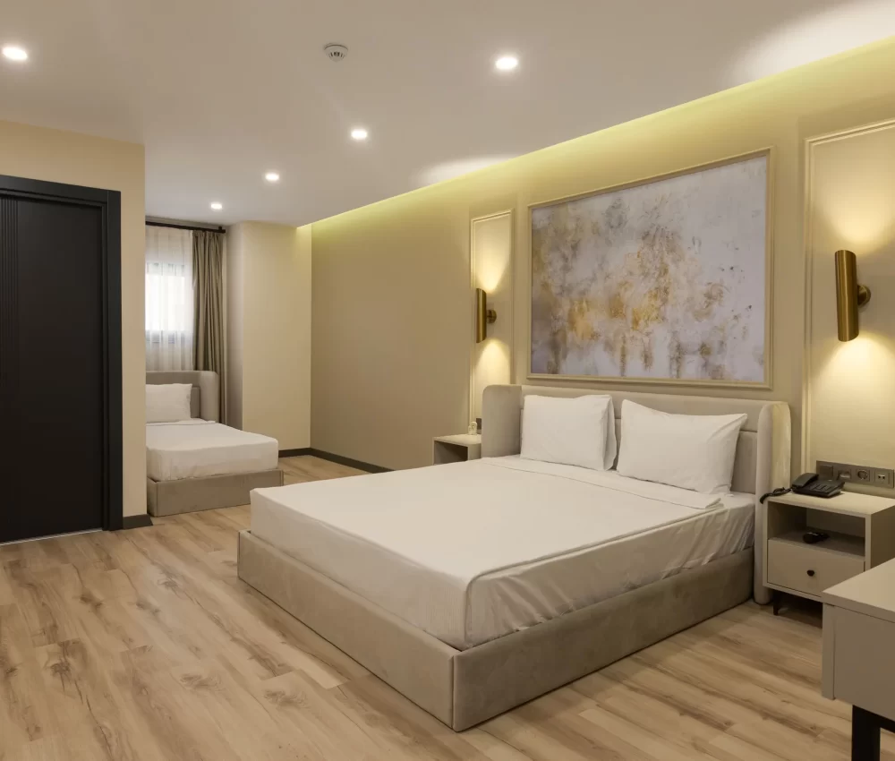 Located in the Lara area of Muratpaşa, Antalya, FORA INN LARA offers quality service for guests who wish to easily experience both nature and city life. Among our economical and comfortable accommodation options, the Eco Standard Room stands out with its two-guest capacity and functional design.
