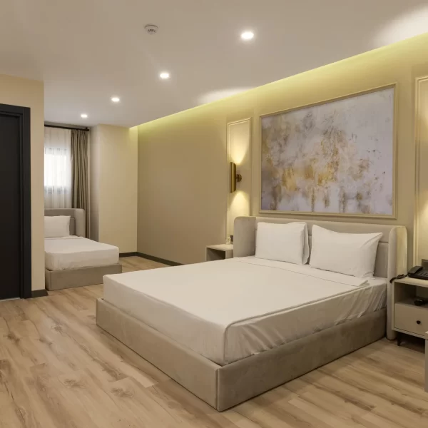 Combining simplicity and comfort, the Eco Standard Room offers an economical accommodation alternative with its equipment designed to meet essential needs. Thanks to its functional and well-organized layout, it is suitable for both short holidays and business trips.