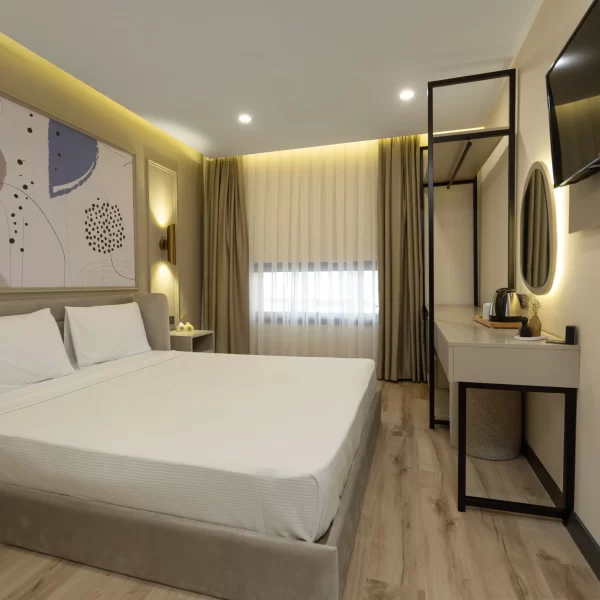 Decorated with a minimalist and functional design approach, the Standard Room is equipped with everything you need to meet your essential needs. It is a convenient choice for short stays, whether for leisure or business purposes.
