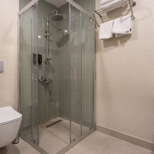 The bathroom with a shower is maintained to high hygiene standards, offering clean towel sets and bathroom amenities. Daily housekeeping service ensures that your room remains tidy, fresh, and comfortable at all times.