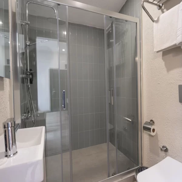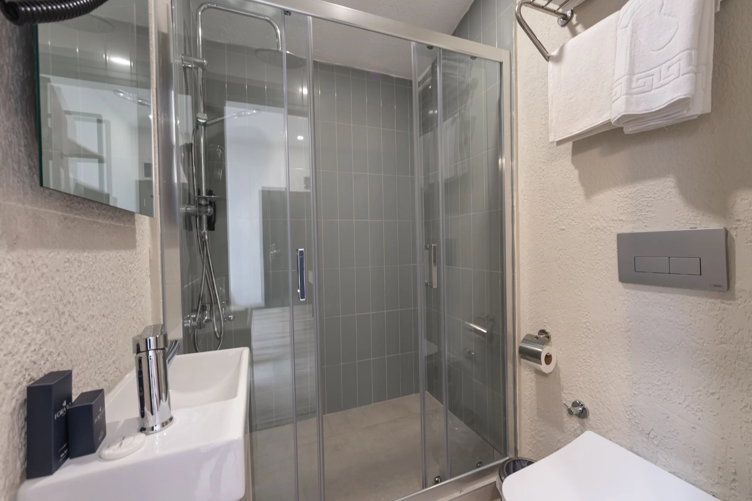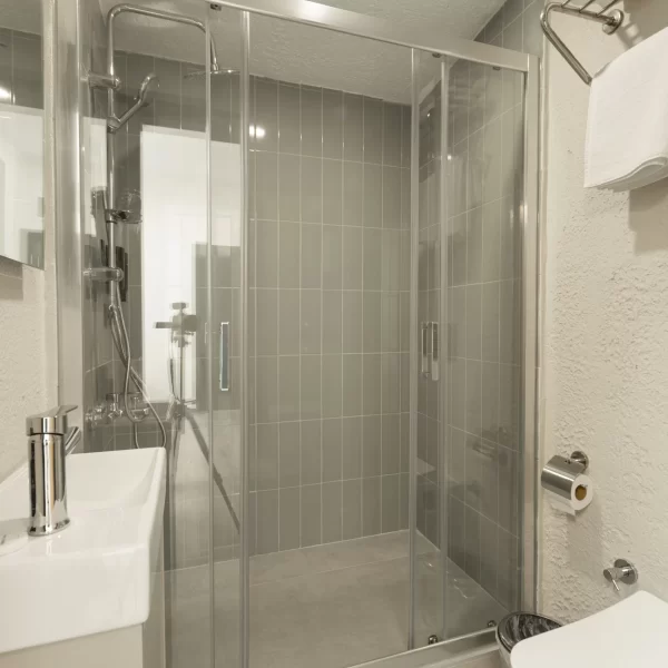 The bathroom with a shower is maintained to high hygiene standards, offering fresh towel sets and bathroom amenities. Daily housekeeping service ensures that the room remains clean, tidy, and refreshing at all times.