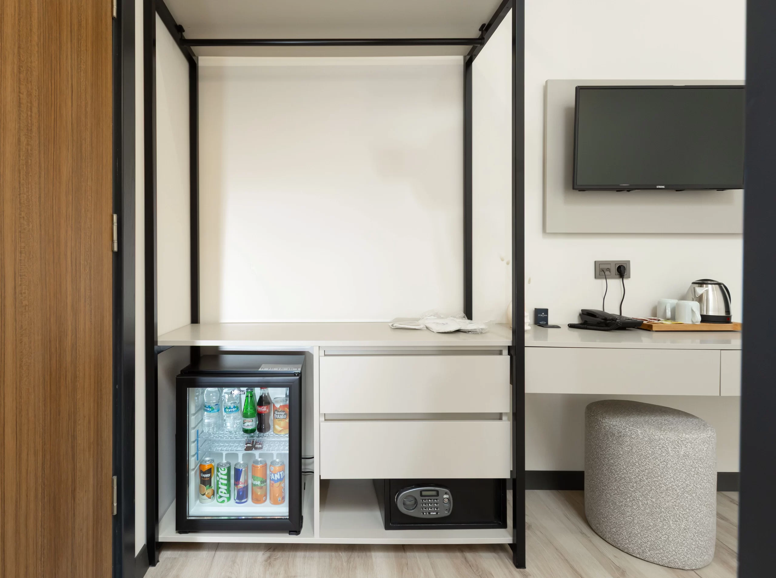 Modern amenities such as air conditioning, an LCD TV, a mini refrigerator, and free Wi-Fi enhance your comfort while easily meeting both business and leisure needs. A wardrobe and work desk provide practical and organized use throughout your stay.